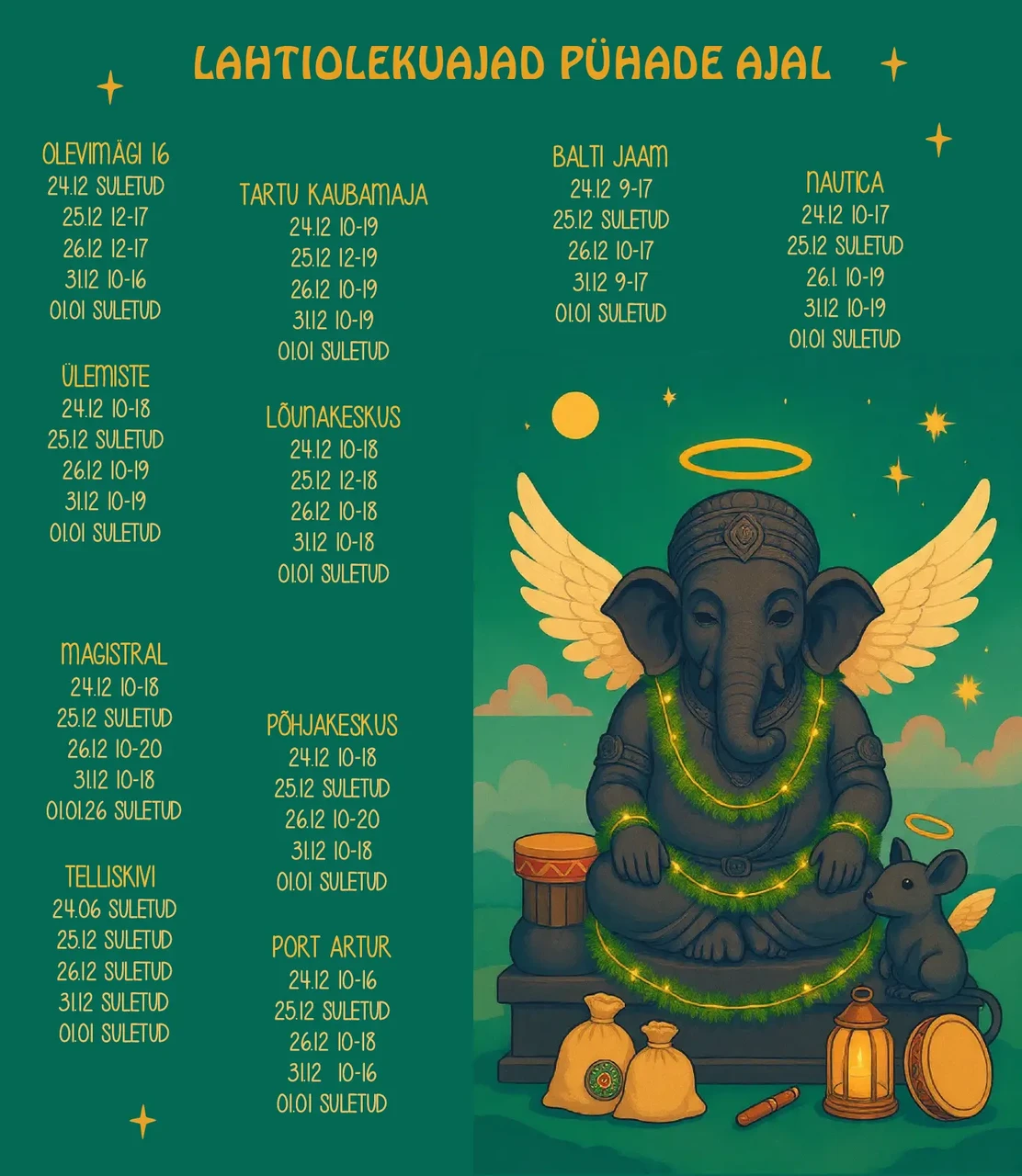 | Universaal Universum Tartu Lõunakeskuses, Lääneringtee 39, 50501 Tartu Tel 773 5347, lounakeskus@eksootika.ee E-L 10-21, P 10-19 |