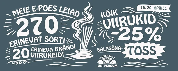 Kasuta salasõna „TOSS“ ja saa kõik viirukid -25% soodsamalt!